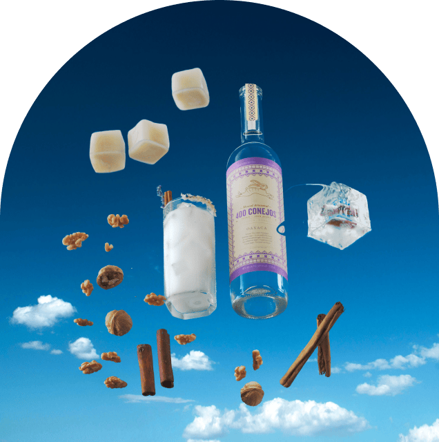 En vaso Old Fashion con hielo, agrega Mezcal 400 Conejos®, completa con agua, mezcla y disfruta. Decora con hojas de menta y una ramita de canela.